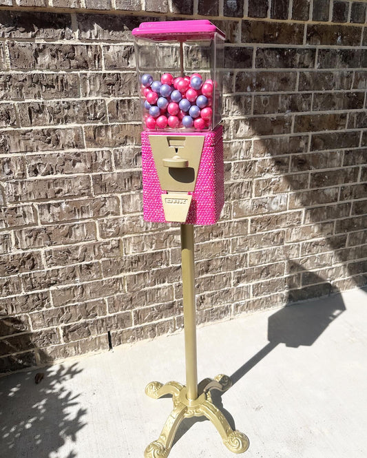 Custom Refurbished single gumball machine on stand with rhinestone machine and gold hardware